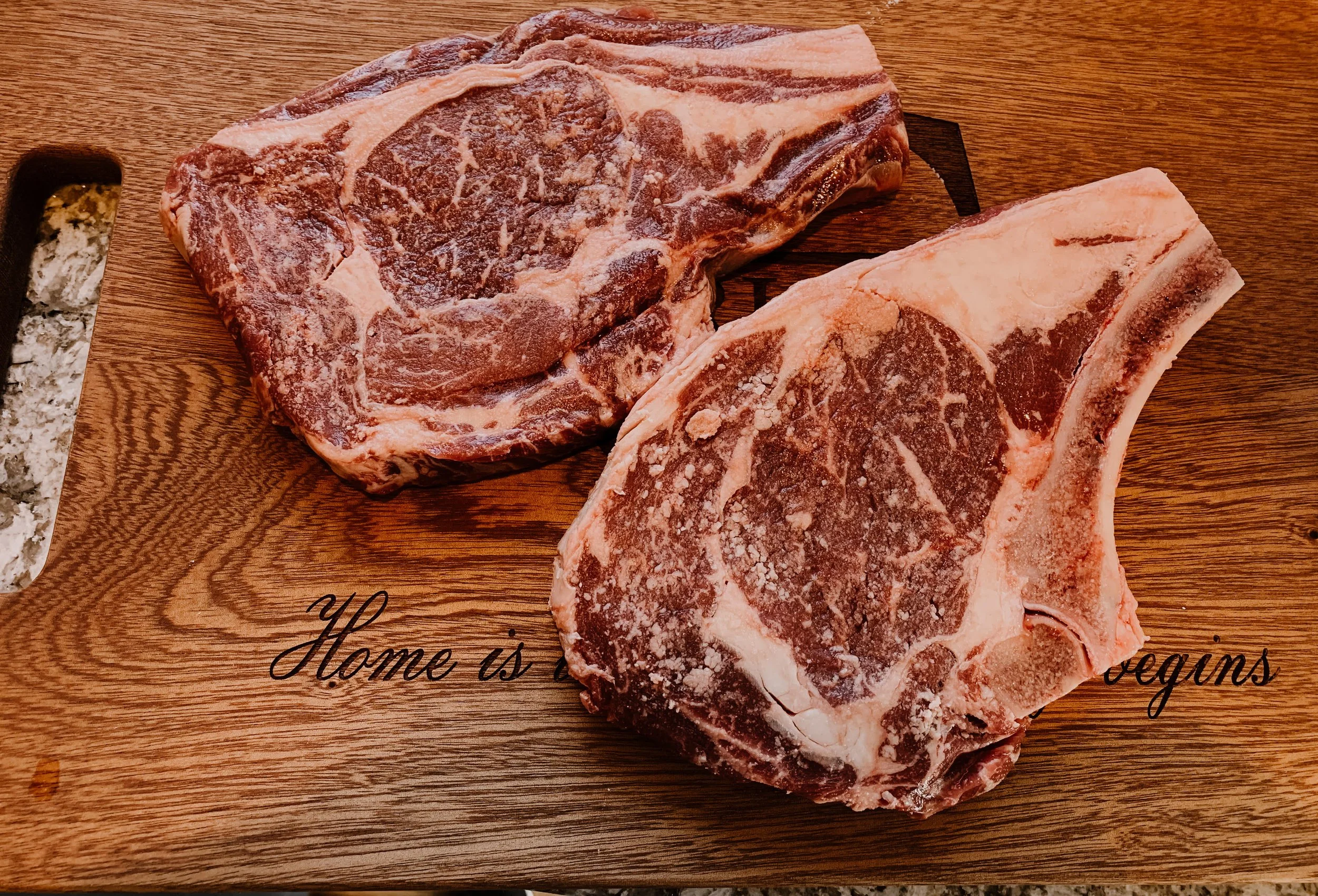 The beef is dry aged for 14 days and processed to the customer’s specifications